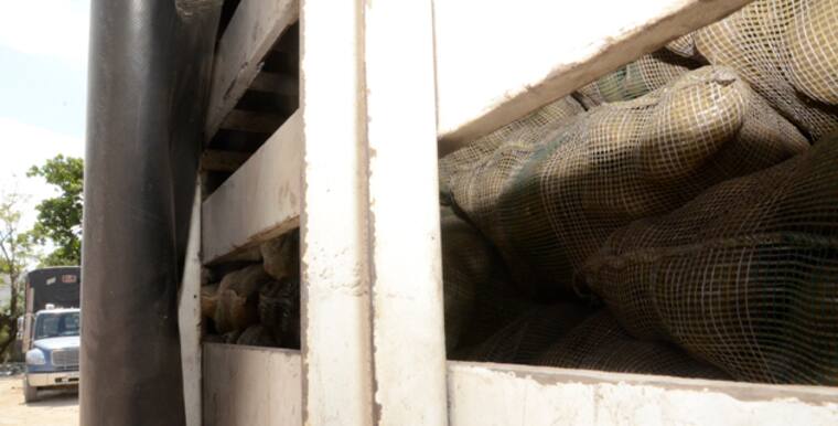 ‘‘¡Queremos papa! ¡Queremos papa!’’, gritaban frente al parqueadero de la calle 30 con carrera 15 en el que estaban parqueados tres camiones con 680 bultos cada uno.
