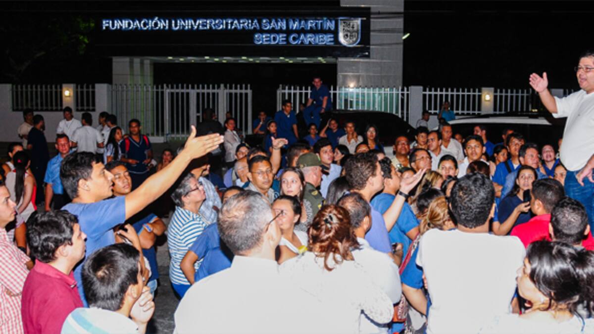 Por más de dos horas más de 120 personas, entre estudiantes de la facultad de medicina de la Universidad San Martín y sus padres, bloquearon el corredor universitario de Puerto Colombia, a la altura de la sede de la institución universitaria.