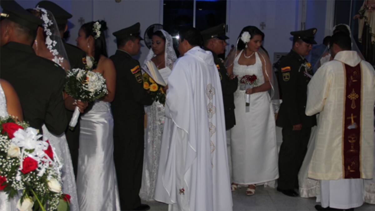 En la capilla de la escuela de Policía Antonio Nariño, 15 uniformados de la Policía Metropolitana de Barranquilla contrajeron nupcias con quienes habían sido durante varios años sus compañeras sentimentales.