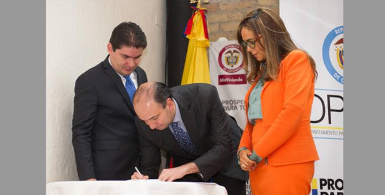El ministro de Vivienda, Felipe Henao Cardona, y la directora del Servicio Nacional de Aprendizaje, Sena, Gina Parody, firmaron un convenio que les permitirá a las familias favorecidas con el programa de las viviendas gratis mejorar su calidad de vida mediante la generación de empleo.