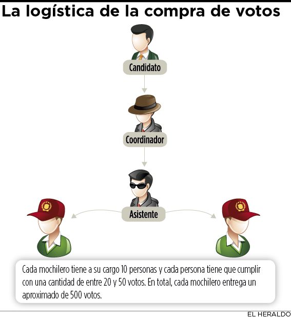 Aclaró que el llamado 'mochilero tradicional' es alguien de 'mucha confianza' del candidato, razón por la que este le cumple 'a ojo cerrado' con el pago de la cantidad de votos negociados, que por lo general son entre 300 y 500.