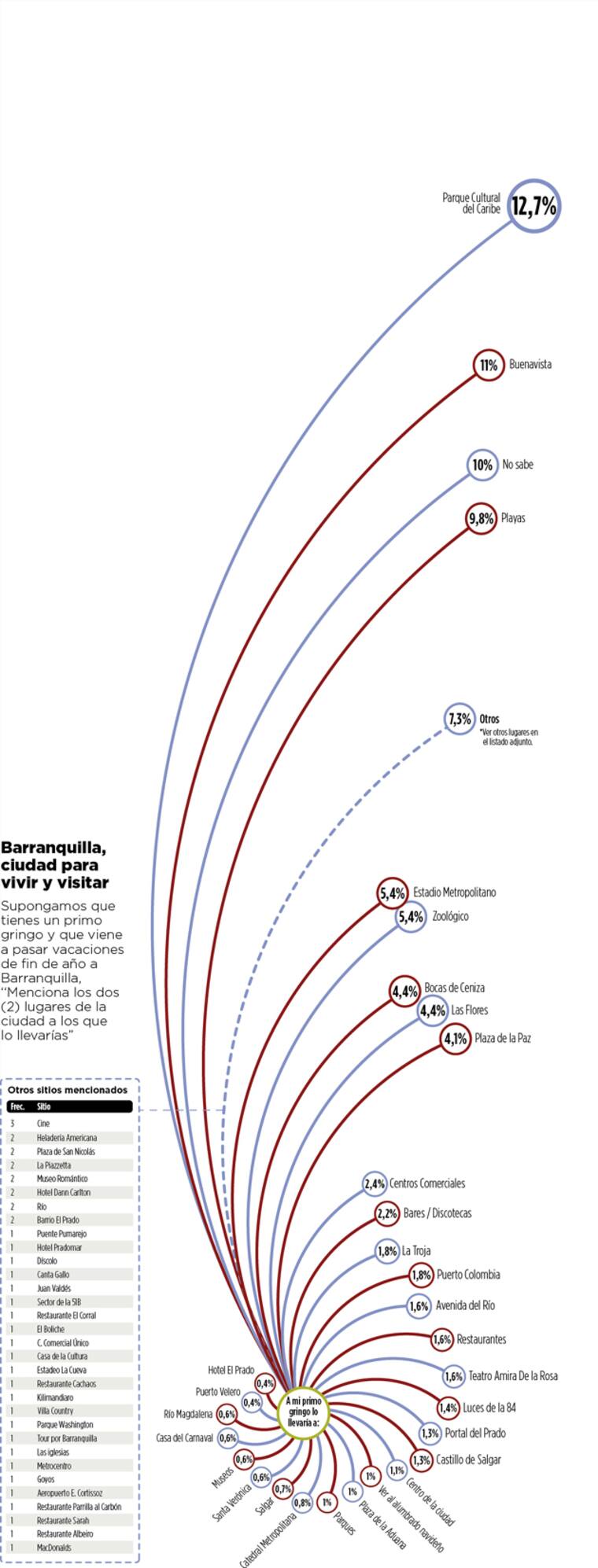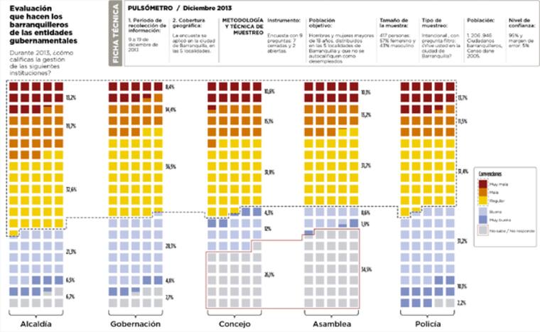De hecho, resulta preocupante el porcentaje de la zona gris delineada con rojo, respecto a la evaluación de la gestión pública (infografía inferior); un 26,1% opina que desconoce la gestión del Concejo, y un 34,5%, la de la Asamblea'. Por último añade que 'es probable que los movimientos religiosos que han tomado fuerza estén disminuyendo la participación en el Carnaval de Barranquilla'.