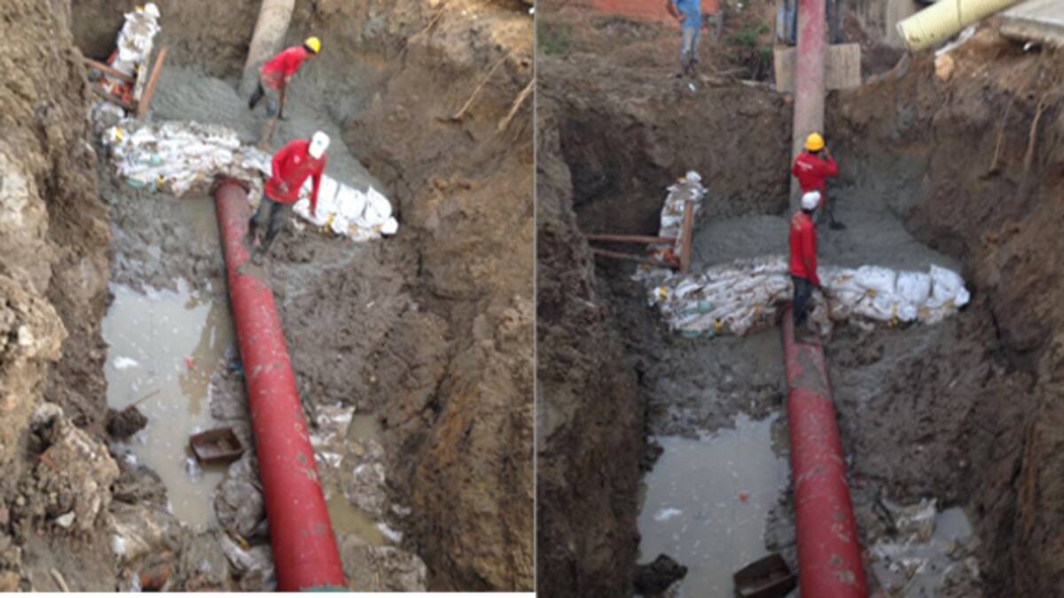 La Triple A reemplazó 40 metros de tubería de hierro dúctil del acueducto costero, para darle solución a la fuga localizada a la altura de la Ladrillera Barranquilla en el corregimiento de Juan Mina y que impedía el llenado de la Estación de rebombeo Guaymaral, informó la empresa.