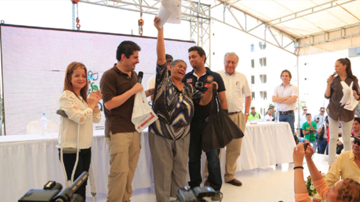 Durante la entrega de las soluciones de vivienda en Villas de la Cordialidad, la alcaldesa Noguera entró al apartamento B1-103, en donde fue recibida por su propietaria Genoveva Vega, de 79 años de edad, y cuatro familiares con los que iniciará su nueva vida, luego de haber perdido su casa en el barrio El Bosque por la temporada invernal 2010-2011.