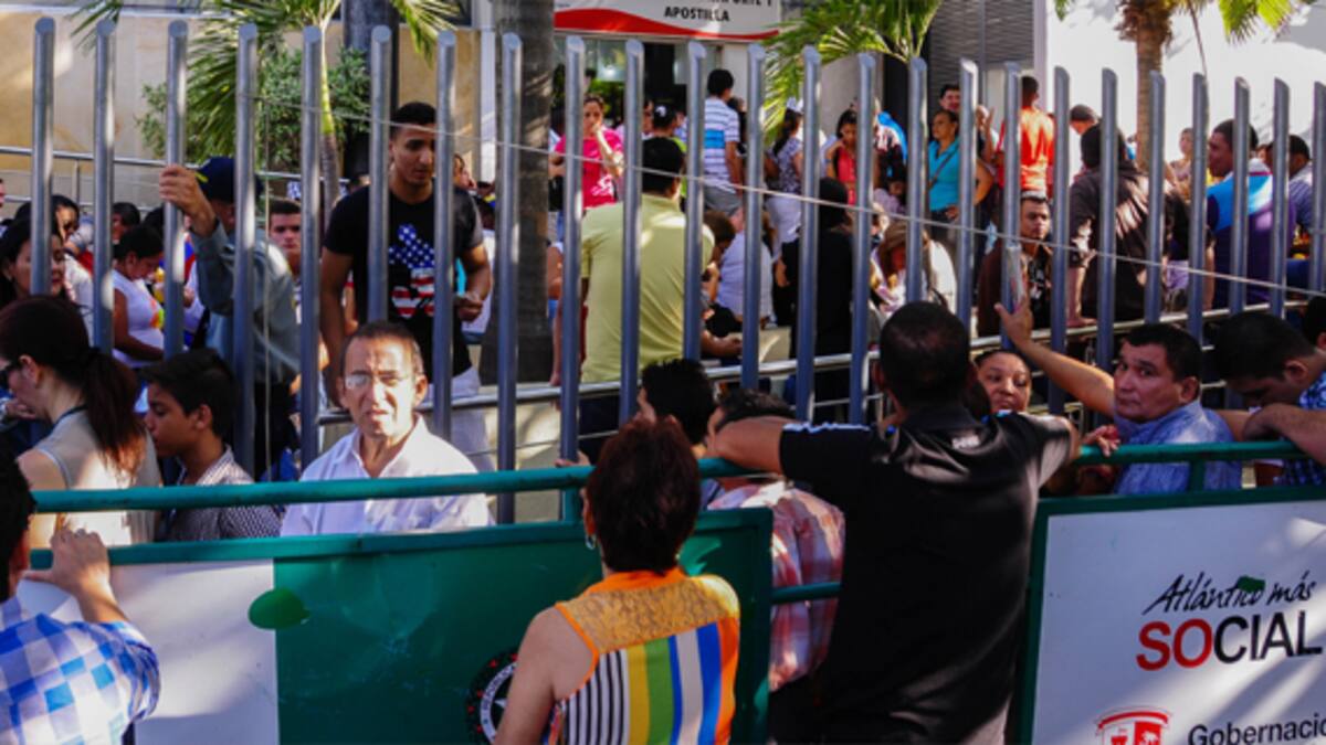 'Desde el martes, estamos en esto: haciendo la fila. Hay demasiada gente. Venimos desde Campo de la Cruz y estamos gastando plata en hotel. Esperamos que hoy, por fin, no entreguen los pasaportes. Nos dijeron que hoy, a las 2 de la tarde', afirmó, Germán González un herrero radicado en Venezuela desde hace 38 años. 'Yo vengo todos los diciembre y esta vez me voy a llevar a mi esposa para allá que es donde yo trabajo', agregó.