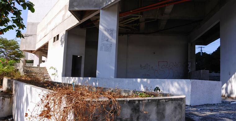 La obra se encuentra paralizada desde 2011 por iliquidez del constructor. Ninguna entidad ha tomado cartas en el asunto para evitar que sea refugio de indigentes.