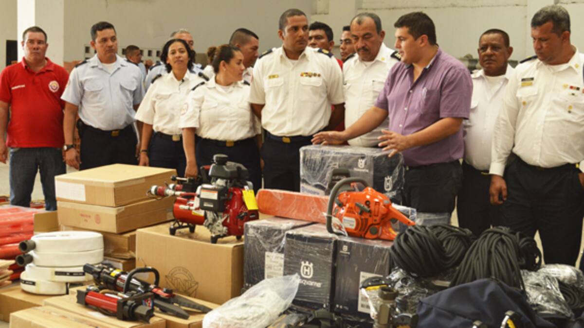 Entre los elementos entregados se cuentanmotosierras, equipo de extracción vehicular, equipo de rescate vertical, escaleras, camillas, cuello para inmovilización, gatos hidráulicos, herramienta combinada, mangueras, pitón portátil y cuerdas.