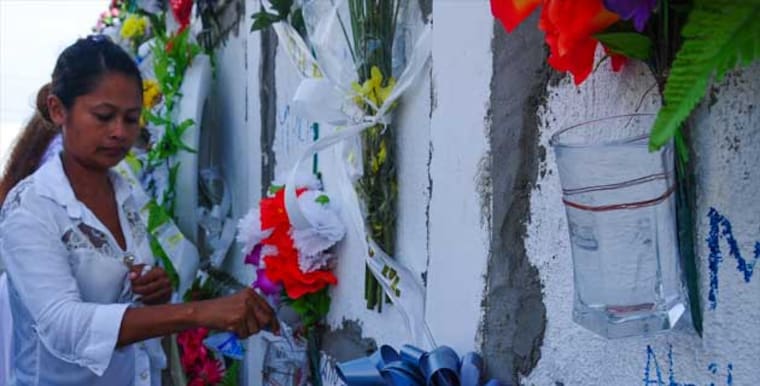 Xiomara Arévalo, madre de una de las víctimas, dice que el ánima –el alma del difunto– 'llega sedienta' al cementerio, a la casa en la que vivió y al sitio donde murió. Ella cuenta que va casi todos los días al cementerio a revisar que estén en su lugar las flores artificiales que puso en la sepultura de su hija el día del entierro y a cambiar el agua de los recipientes porque esta, con el pasar de los días, 'coge mal sabor'.