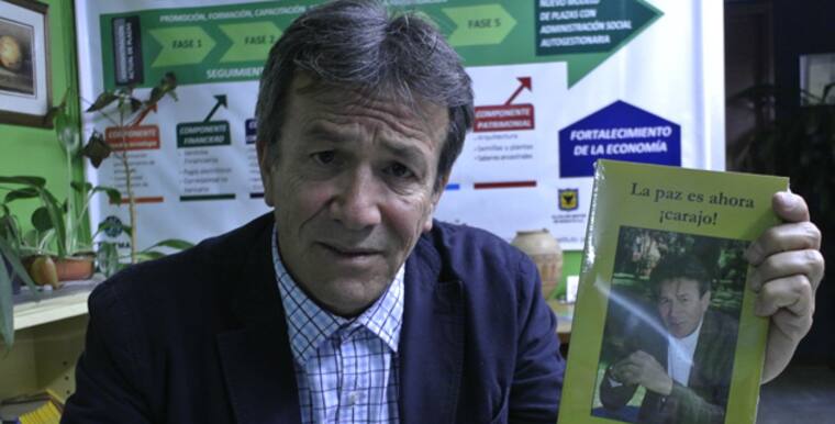 Con un acento que pendula entre santandereano y español, explica por qué regresó a Colombia. 'Regreso porque hay una oportunidad de paz en gestación. No me fui a Europa por siempre. Me levanté en armas buscando un destino mejor para mi país (…) y tras el proceso de paz veo al país, en 10 años, con mejores condiciones de vida'.