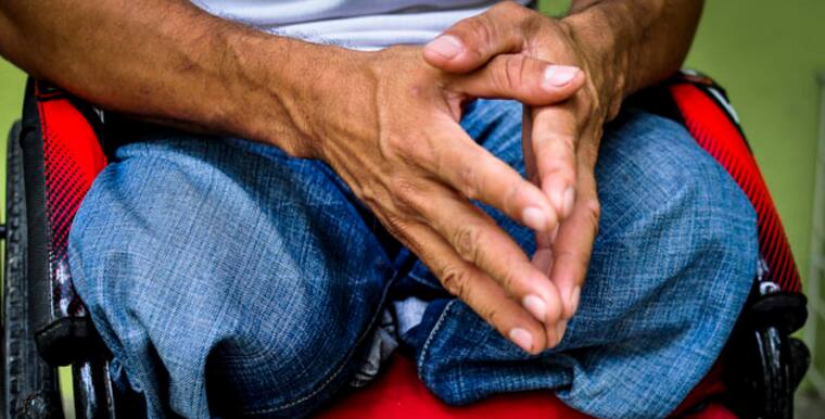 Tras 10 años de cargar fusiles, hoy Enrique usa sus manos para mover su silla de ruedas.