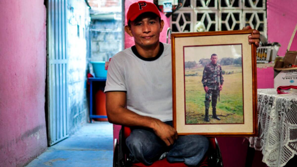 Enrique José Pérez tiene 37 años y ya es un soldado veterano de guerra. Combatió ocho años en el Caquetá y Putumayo. En paisajes manchados de balas, explosiones, sangre, sufrimiento. Hasta que un día en los Montes de María cayó en un campo minado y perdió las piernas. Ahora está en una silla de ruedas, confinado a mirar la vida pasar desde la puerta de su casa verde pistacho, en un sector polvoriento de calles destapadas que parecen trochas en el barrio Villa Viola, Soledad.