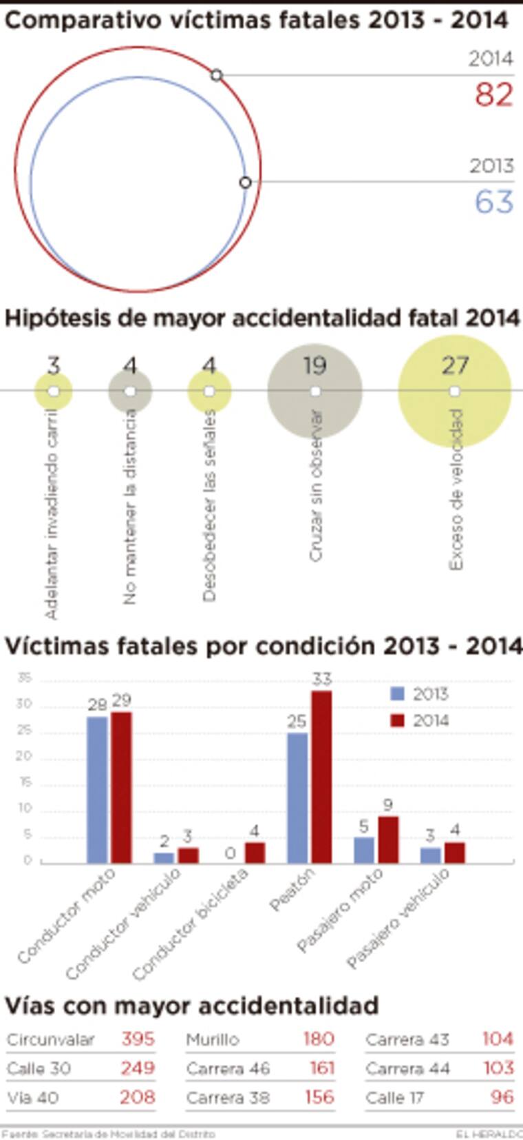 Los indicadores de accidentabilidad fatal en Barranquilla van en alza con respecto a los del 2013. Ya son 82 las muertes por accidentes de tránsito registrados hasta el 30 de noviembre del 2014, 19 víctimas más que las del año pasado, en la que se registraron 63.