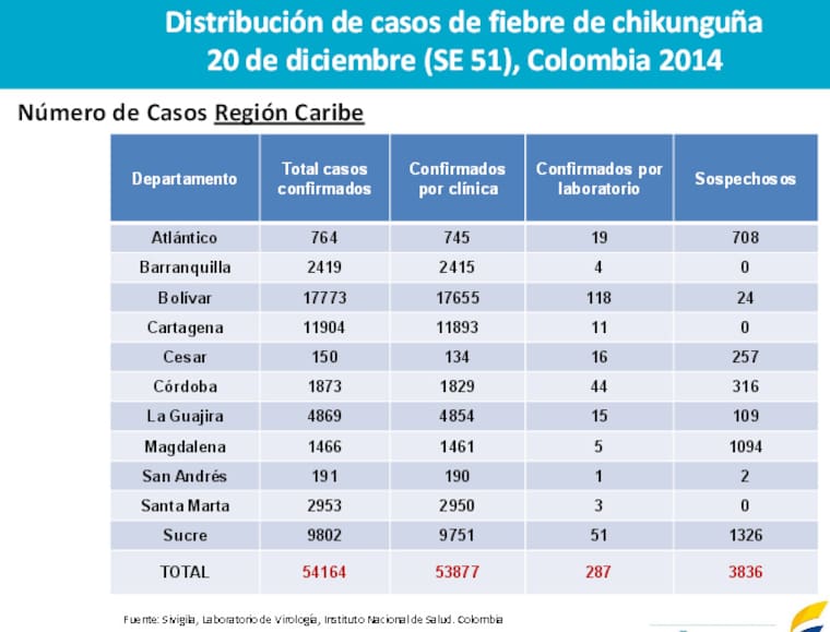 Ootras cifras son las que maneja la secretaria de Salud, Alma Solano, que en diálogo con Atlántico en Noticias dijo: 'Según la notificación oficial por parte de las instituciones que prestan servicios de salud tenemos alrededor de 2.100 casos, sin embargo, desde la Secretaría de Salud nosotros realizamos búsqueda activa permanente en cada uno de los sectores de la ciudad y, a partir de esa búsqueda activa, casa a casa que hacemos con los Caminantes de la Salud, los datos que manejamos es que tenemos alrededor de 4.000 casos de Chikunguña en Barranquilla, el doble de lo que tiene registrado el instituto, pero es una realidad que manejamos en esa búsqueda activa para seguir haciendo prevención e identificación temprana de casos'.