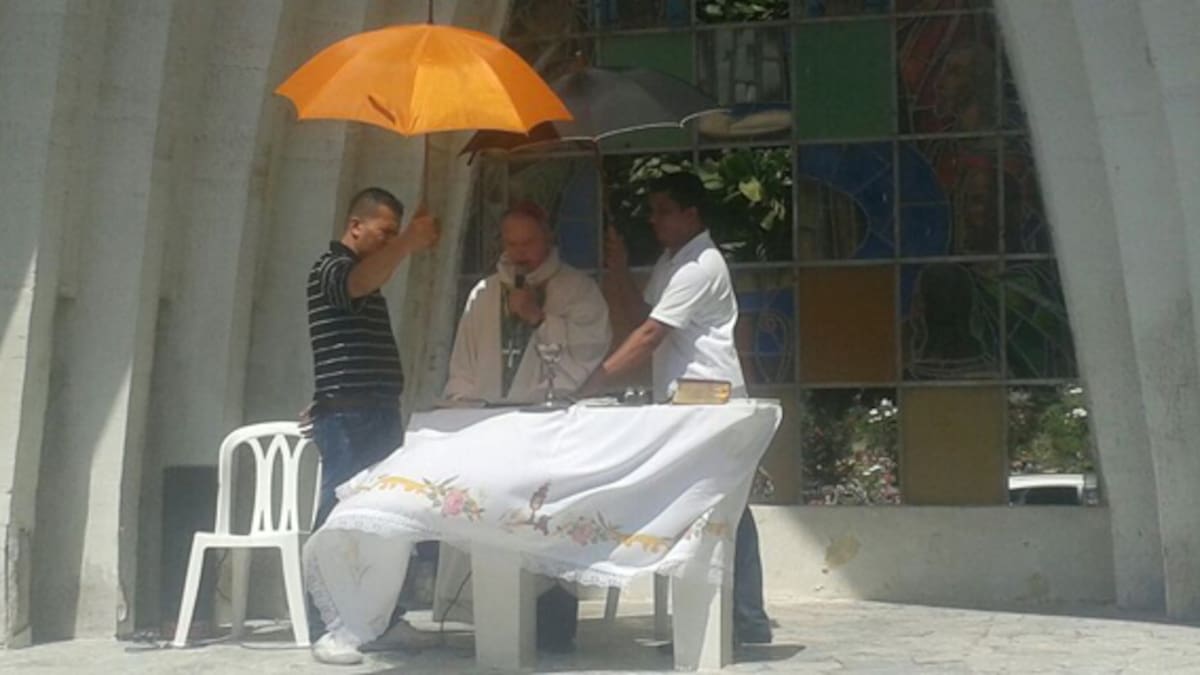 Unas veinte personas asistieron este mediodía a la eucaristía que convocó monseñor Jairo Jaramillo, arzobispo de Barranquilla, en el cementerio Jardines del Recuerdo, con el fin de recaudar fondos para la reconstrucción organizacional y física del campo santo.