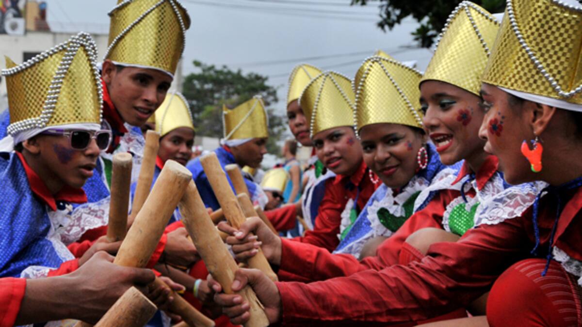 Los danzantes chocaron los maderos de guayacán y el sonido se mezcló con la música de los redoblantes y la dulzaina. ‘‘Esa es la danza del paloteo’’, gritó alguien desde la multitud que retrocedía a las aceras para abrir espacio a la ejecución de los 32 danzantes provenientes de Normandía, no de la provincia francesa, sino de la urbanización del municipio de Soledad.