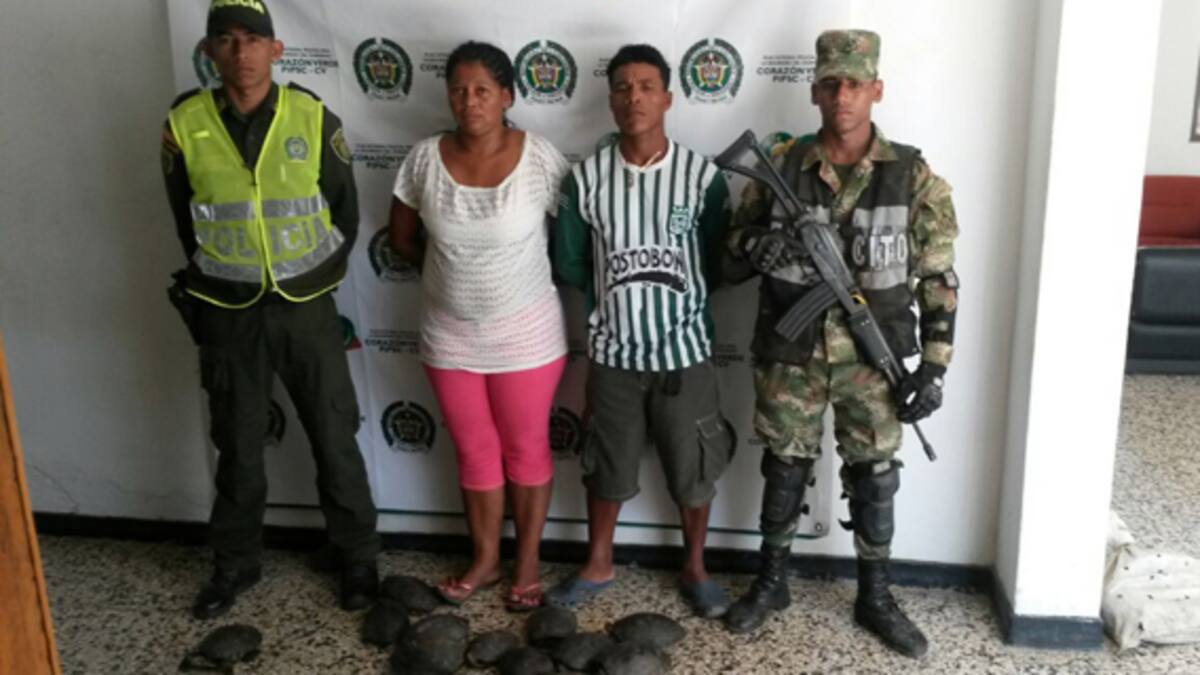 La Policía del Atlántico y uniformados de la Segunda Brigada del Ejército detuvieron en el corregimiento de Las Compuertas, en Manatí, a una pareja de esposos que supuestamente pretendían comercializar 40 hicoteas en el casco urbano de la población.