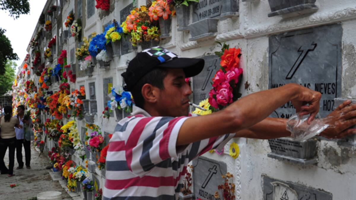 Agachado, casi que de rodillas, Javier Torres, un guarda de seguridad de 45 años, posó sus dedos con delicadeza en la lápida que sella la tumba donde reposan los restos de su madre en el Cementerio Universal.