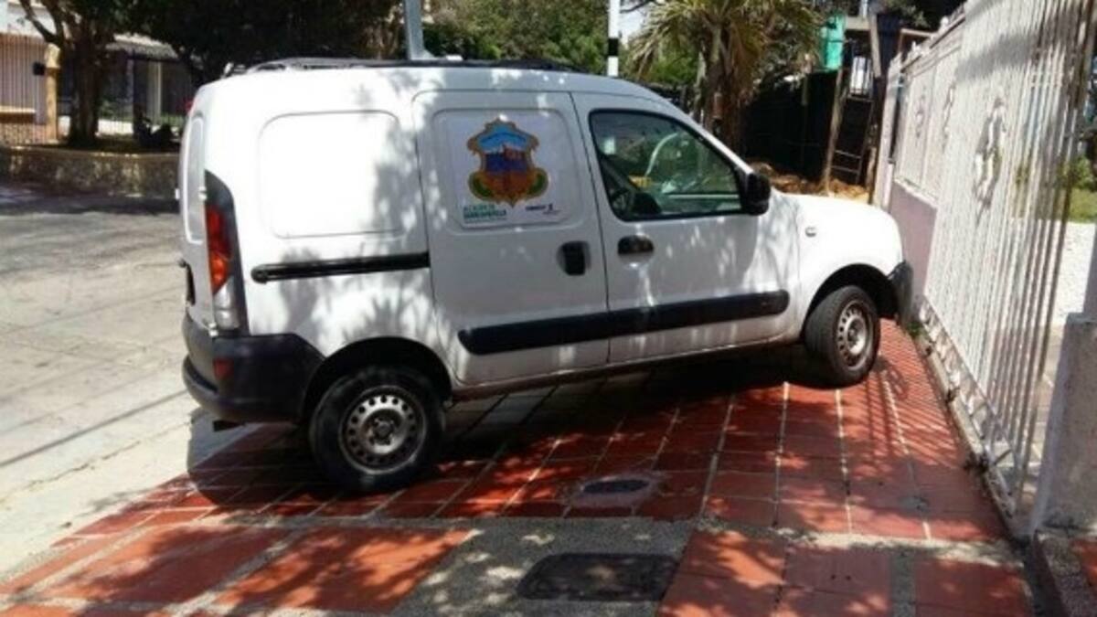 La foto muestra el vehículo de control estacionado en una zona prohibida, donde obstruía el paso para los peatones, frente al domicilio donde funcionan las oficinas de la empresa Sistra S.A., encargada del soporte técnico del ‘Cazainfractor’.