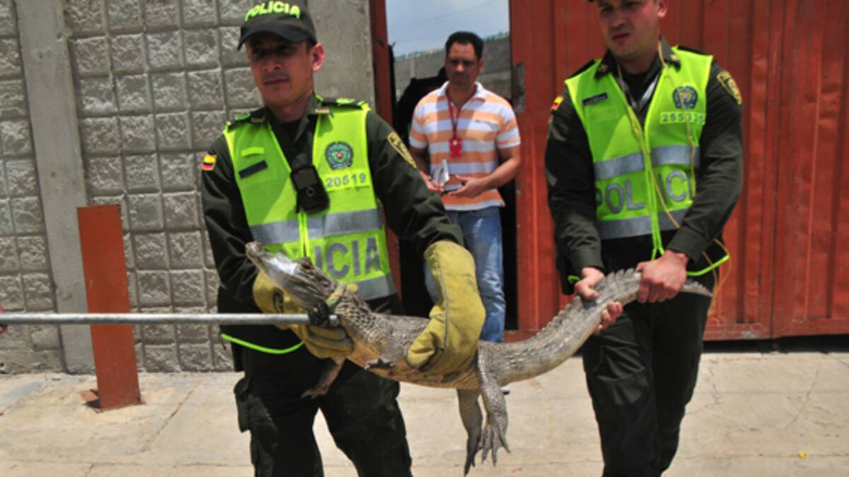 El intendente Eder González, comandante de la Policía Ambiental, dijo que primero la babilla tenía que ser hidratada y luego puesta a disposición de la autoridad ambiental – Damab -.