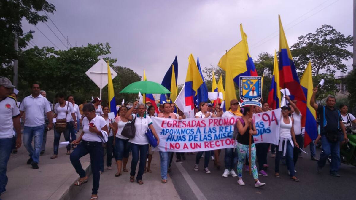 Con banderas y pancartas egresadas del colegio Nuestra Señora de las Misericordias de Soledad marcharon en la mañana de este jueves para manifestar su apoyo a los estudiantes que piden que no se les cambie la administración religiosa por una civil.