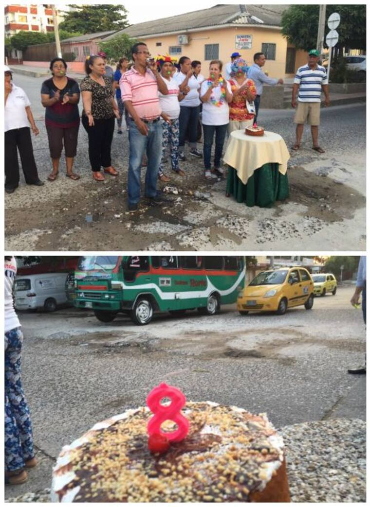 Los vecinos del barrio Los Andes, en el Suroccidente de Barranquilla, realizaron este jueves un festejo muy singular; celebraron el octavo cumpleaños del hueco más popular del sector.