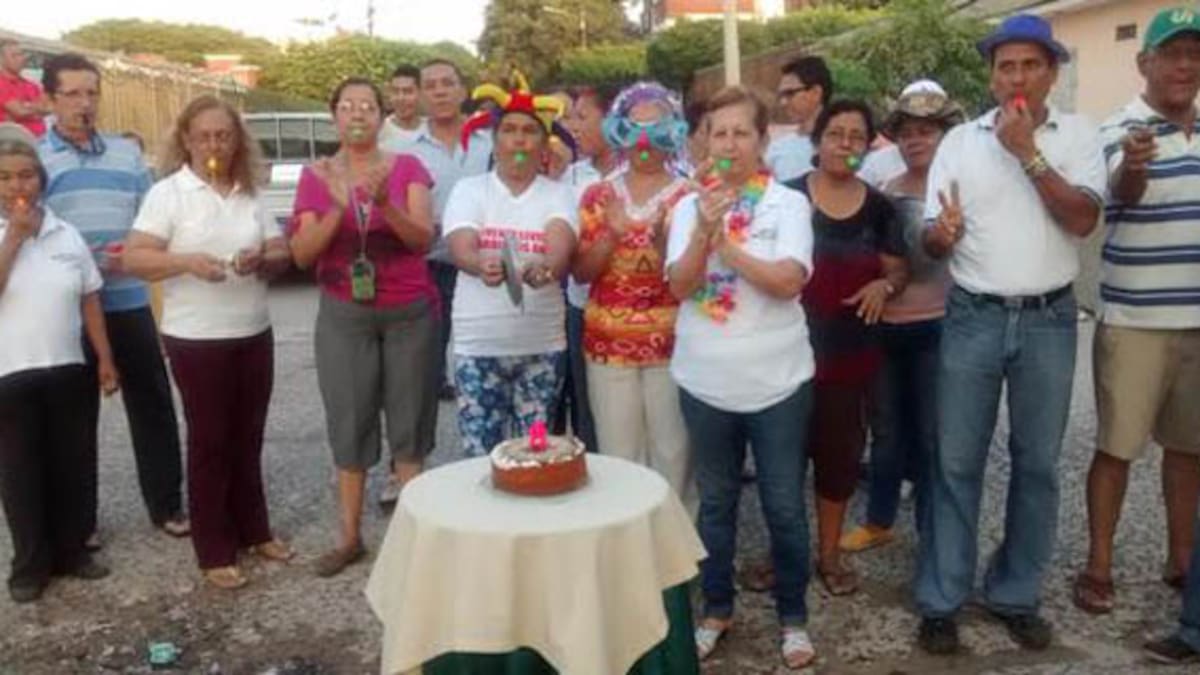La inusual celebración, en la calle 59 con carrera 23, contó con un ponqué, pitos, gorros, todo lo utilizado normalmente en una fiesta de cumpleaños.