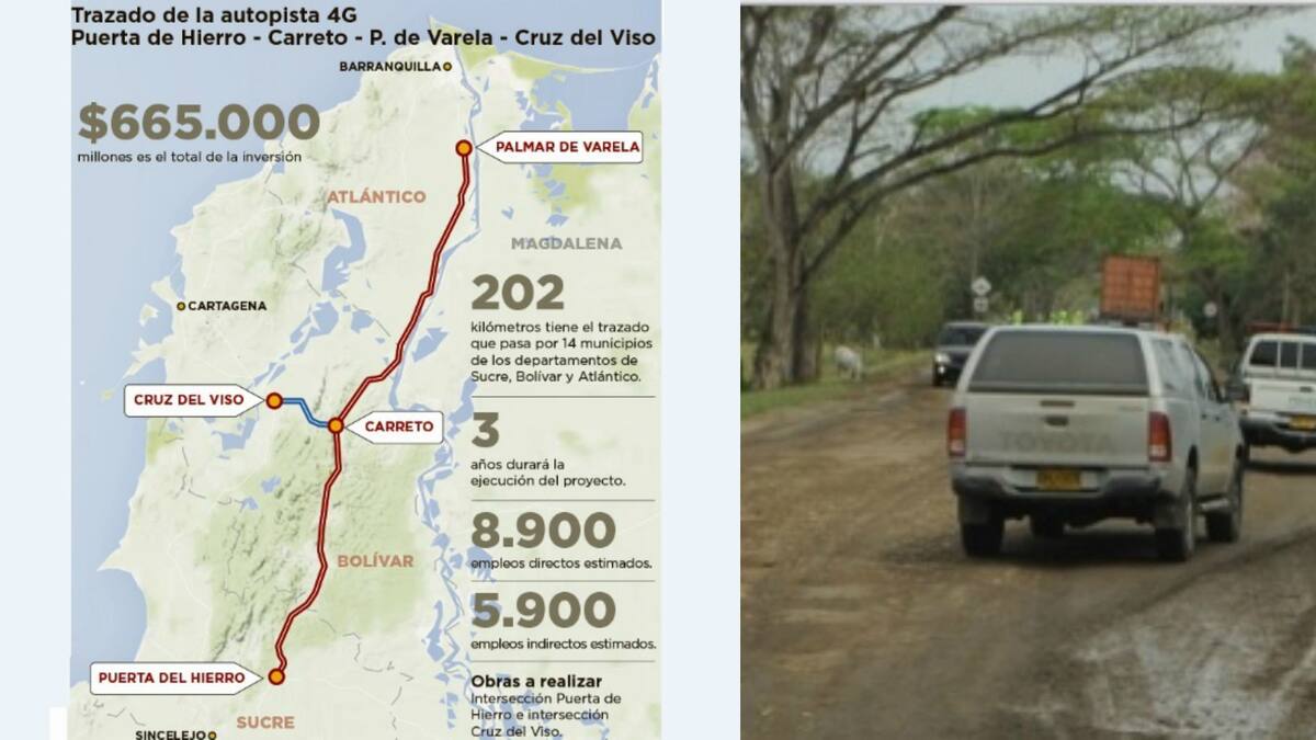 La obra. La autopista Puerta de Hierro - Carreto - Palmar de Varela - Cruz del Viso, según el último comunicado de Presidencia tendría una inversión de $474.267, pero el mandatario aclaró ayer que su valor total será de $665 mil millones. El trazado que tendrá será de 202 kilómetros y pasará por 14 municipios de los departamentos de Sucre, Bolívar y Atlántico.