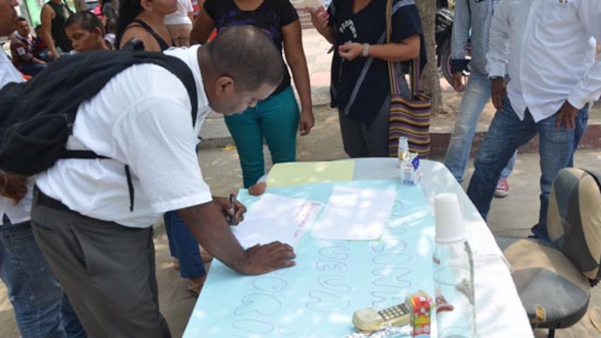 Un escritorio viejo que los padres de familia del colegio Nuestra Señora de Las Misericordias de Soledad instalaron sobre la tierra pelada, frente a la entrada del plantel, es el lugar que le ‘prepararon’, a la nueva rectora de la institución educativa para que tome posesión de su cargo y empiece a despachar.