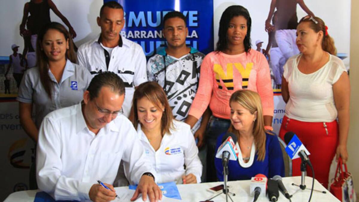 Mil ciento diez habitantes de los complejos residenciales Las Gardenias, Villas de San Pablo y Villas de la Cordialidad, en Barranquilla, serán beneficiados con formación académica, trabajo y transporte, en el marco del programa gubernamental socializado nuevamente por el DPS, la Alcaldía Distrital y Fenalco Atlántico.