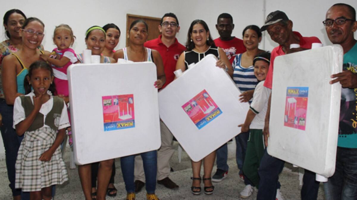 'Estamos muy agradecidos con la alcaldesa Elsa Noguera por las viviendas que nos dieron y ahora con los dueños de las empresas que nos han regalado estas mesas y sillas. Nos hacían mucha falta y les vamos a dar buen uso', dijo Marta Marina Martínez Rubio, a nombre de todas las familias beneficiarias del plan de reasentamiento.