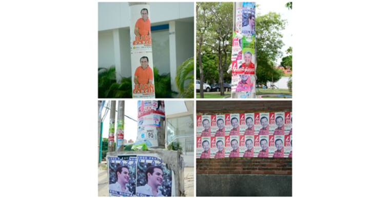 Afiches en postes, vallas, pendones y publicidad en paredes todavía invaden algunos sectores. En el norte y en el sur de la ciudad, el común denominador fueron los postes llenos de publicidad política de candidatos a la Gobernación, Alcaldía, Concejo, Asamblea y ediles.