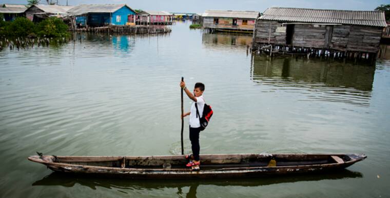 En Nueva Venecia aseguran que los niños aprenden a 'bogar' canoas apenas logran sostenerse en pie. Esta hipérbole explica claramente la simbiosis que tienen con el agua: en ella consiguen el sustento, en ella se transportan, se comunican y comercian, y sobre ella tienen sus casas.