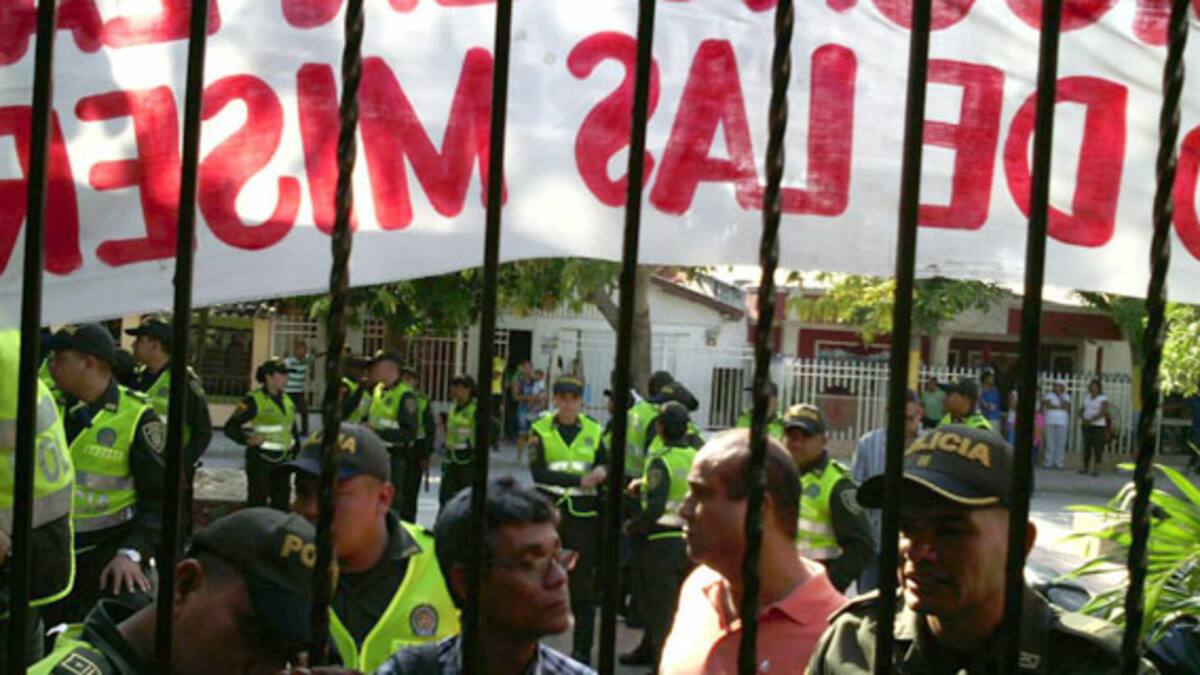 La Policía entró al colegio Nuestra Señora de Las Misericordias para permitir el ingreso de la nueva rectora de la institución, la señora Rosa Belén Suárez, ante la protesta de los padres de familia.