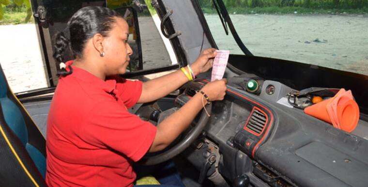 Ella, que ya está acostumbrada a las muestras de asombro e incredulidad de los usuarios de la ruta de la calle 17, solo atina a mirarlo por el retrovisor con una sonrisa orgullosa. Tiene un bluyín, una camiseta tipo polo rojo con el logo de la empresa y lleva el cabello recogido.