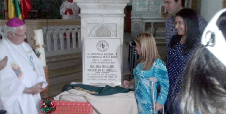 Un grupo de exalumnos del colegio Los Salesionos, orden sacerdotal encargada de la parroquia de San Roque, le entrego a la mandataria una imagen del Divino Niño, del cual es devota, según ha confesado la propia Alcaldesa.