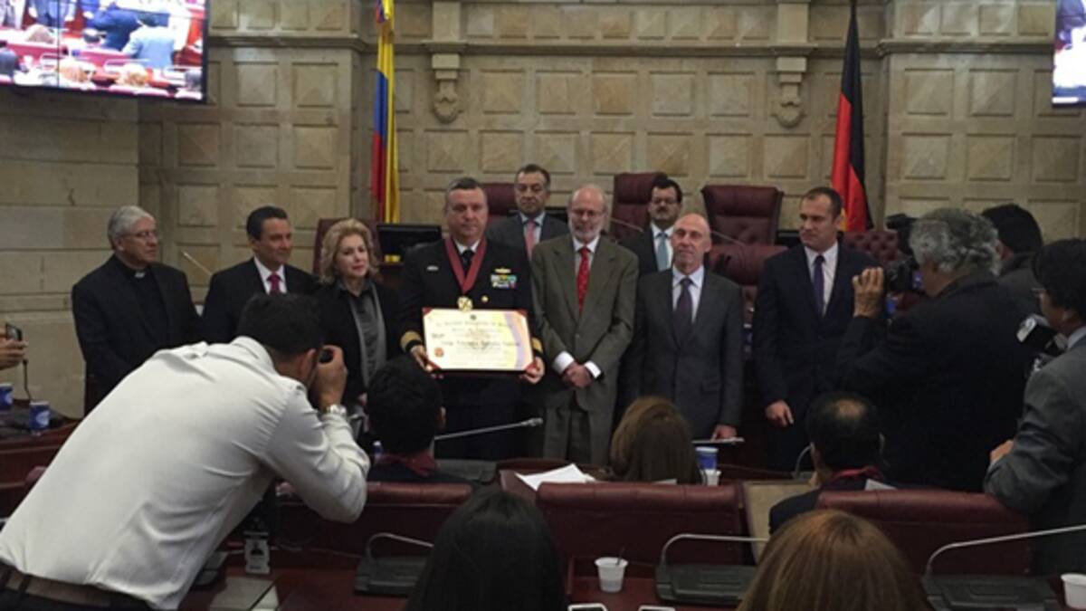 En ceremonia realizada en el salón Boyacá del Congreso de la Republica fue entregada la condecoración 'Orden Carlos Lemos Simmonds' en grado de Gran Caballero al Capitán de Navío y Director Seccional de la Aduana de Barranquilla.