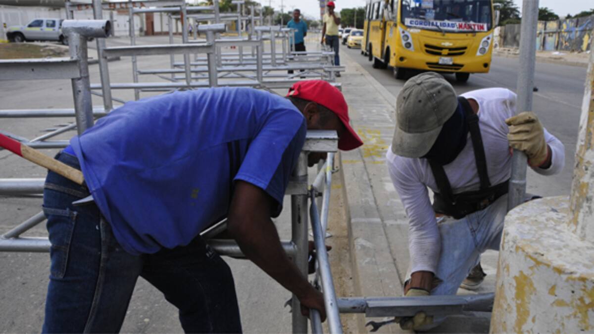 El montaje de los palcos para los desfiles del Carnaval que tendrán lugar en el Cumbiódromo de la Vía 40 durante el 6, 7 y 8 de febrero empezó ayer. Por este motivo, la Secretaría de Movilidad habilita desde hoy el contraflujo en la calzada sur- norte (sentido Centro-Las Flores) y aplica el pico y placa para particulares entre la calle 85 y la carrera 67B.