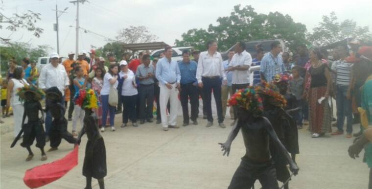 Con danzas fueron recibidos el ministro, el gobernador y el gerente del Fondo Adaptación.