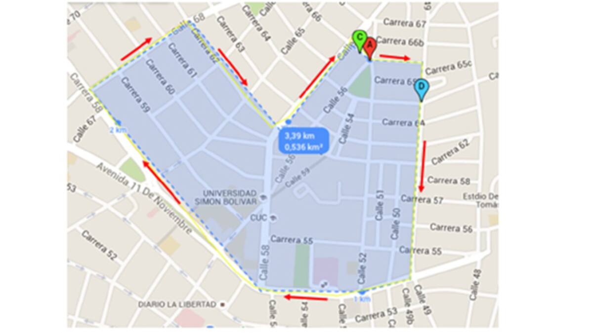 El recorrido tendrá una zona de concentración en la calle 58 con carrera 66 (Iglesia Nuestra Señora de Guadalupe), bajará por la Carrera 66 con calle 58 esquina, avanzará por la carrera 66 hasta la calle 49, continuará por ésta hasta llegar a la esquina de la carrera 54, cruzará a la derecha, continuará hasta el empalme con la carreras 58, seguirá por ésta, girará a la derecha por la calle 68, avanzará hasta la esquina de la carrera 62, doblará a la derecha hasta llegar a la calle 58, girará a la izquierda y finalizará en la carrera 66 con 58 esquina.