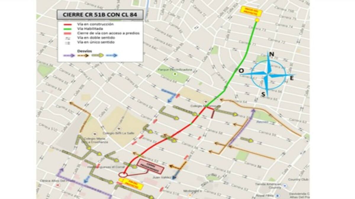 Este miércoles, 17 de febrero, por las obras de canalización del arroyo de la Calle 84, la Secretaría de Movilidad informó que se cerrará la intersección de la carrera 51B.