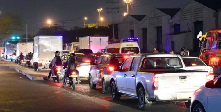 En el interior de algunos vehículos, no todos los puestos son ocupados. En los andenes u orillas de la vía solo dos personas se ven conduciendo bicicletas. Sin embargo, dentro de los buses de transporte público, incluyendo Transmetro, los apretujados pasajeros viven su propio ‘trancón’.