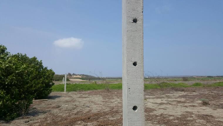 Los postes fueron puestos el año pasado en zona que hace parte del cuerpo de agua, pero con la intensa sequía producto del fenómeno de El Niño, el terreno estaba yermo.