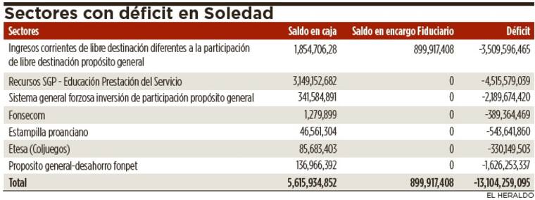 Federmán Vizcaíno, secretario de Hacienda de Soledad, confirmó a EL HERALDO que la administración de Soledad enfrenta hoy un déficit de $13.104.259.095 por contratos realizados en el gobierno de Franco Castellanos.