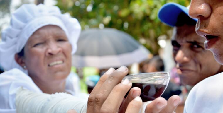 Desde las nueve de la mañana aparecen al principio de la calle La Ciénaga las comitivas de los autoflagelados; pero mucho más temprano, los vecinos del municipio atlanticense preparan el negocio del día: sillas para alquilar, sopas y arroces para el almuerzo, bebidas para refrescar la ardiente mañana, juegos para distraer a los niños.