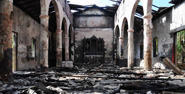 La construcción, de 80 años de antigüedad, fue declarada como pérdida total por ingenieros que inspeccionaron los restos. Del templo solo quedó el cascarón ennegrecido, y adentro, como unas espinas de pescado, la estructura que servía como soporte para el techo de tejas, que yacía desplomado sobre los pisos de cerámica mezclado con el vidrio de las lámparas.