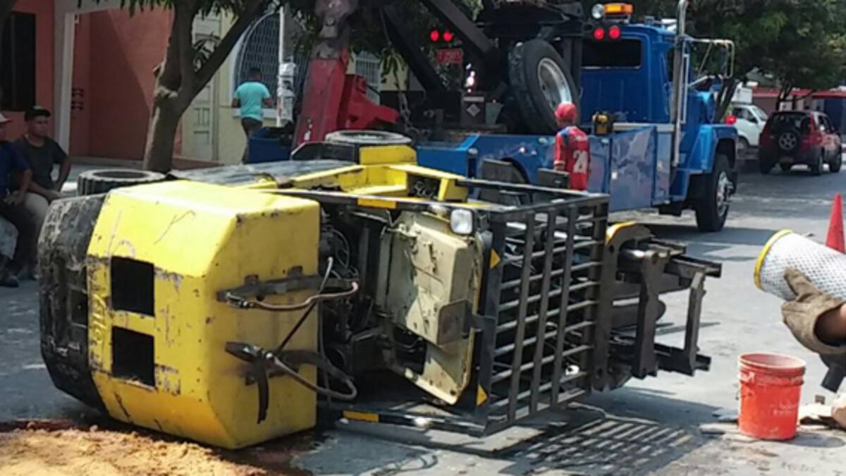 En la mañana de este lunes un vehículo tipo montacarga se volcó en la calle 52 No. 37-38.