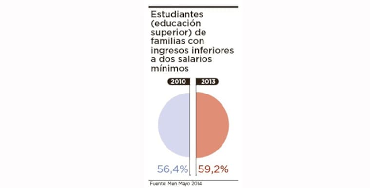 El país ha avanzado en cobertura con equidad. El 59% de la población que está accediendo a la educación superior proviene de familias con ingresos inferiores a dos salarios mínimos legales vigentes.