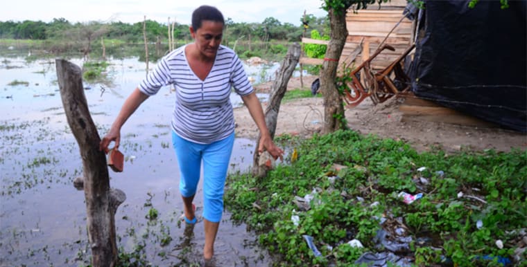 'Desde que estoy aquí han sido días horribles. Si es así con una lluvia, no quiero imaginar hasta donde llegará el agua cuando sea más fuerte', expresa Reyes, oriunda de Cascajal, Magangué (Bolívar).