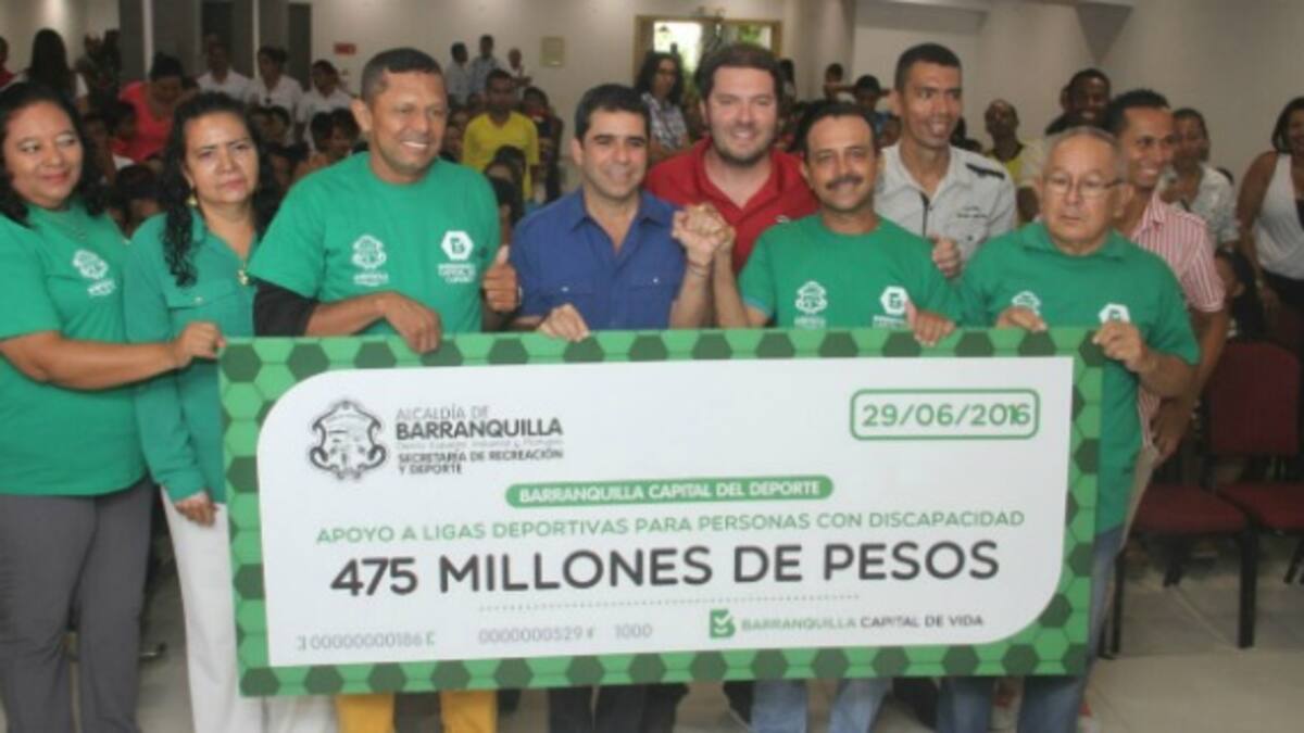El alcalde de Barranquilla, Alejandro Char entregó este miércoles la suma de 475 millones de pesos a las ligas deportivas conformadas por personas en condición de discapacidad.