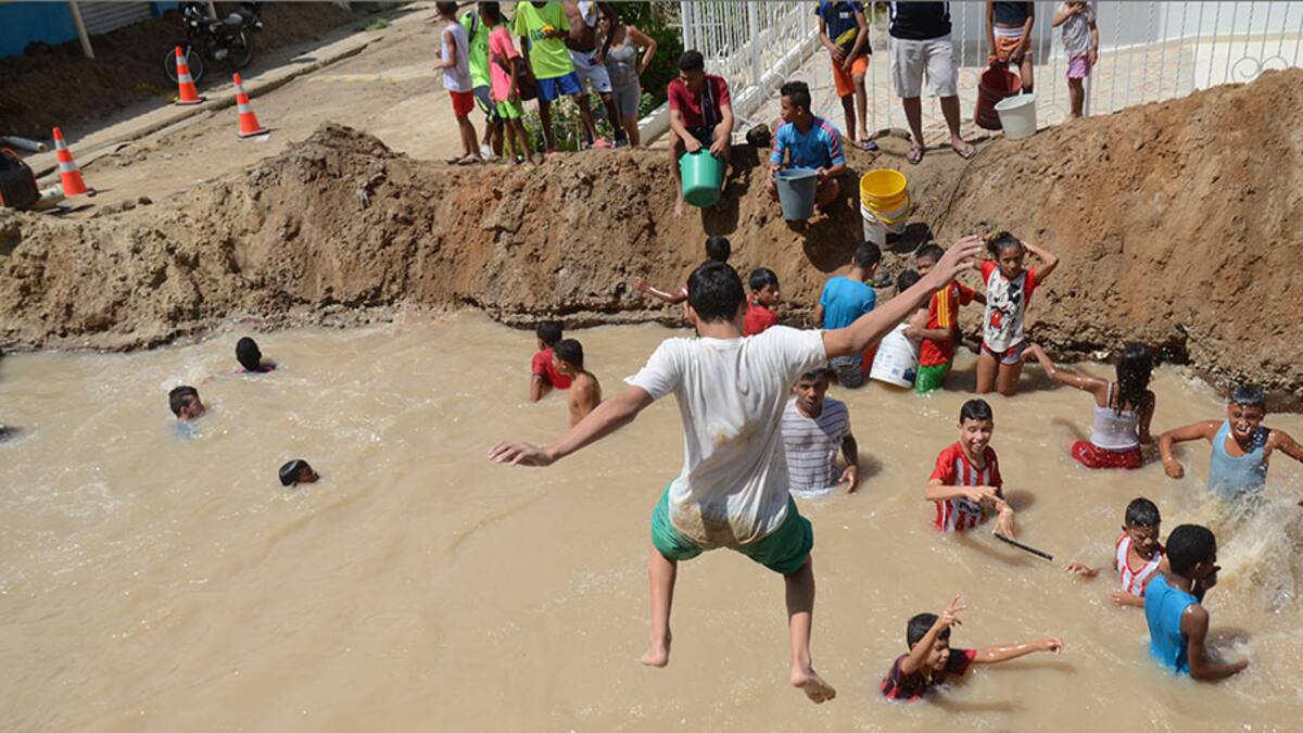 En una piscina quedó convertida la obra del acueducto de Triple A, ubicada en la carrera 12 entres calles 64 y 63, luego de que el miércoles se rompiera una tubería que dejó sin agua los barrios Terranova y Nuevo Milenio del municipio de Soledad.
